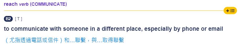除了伸手,reach 还有个生义,也就是和……联系。老外对你说 reach me ,就是叫你电话联系他或发邮件联系他。