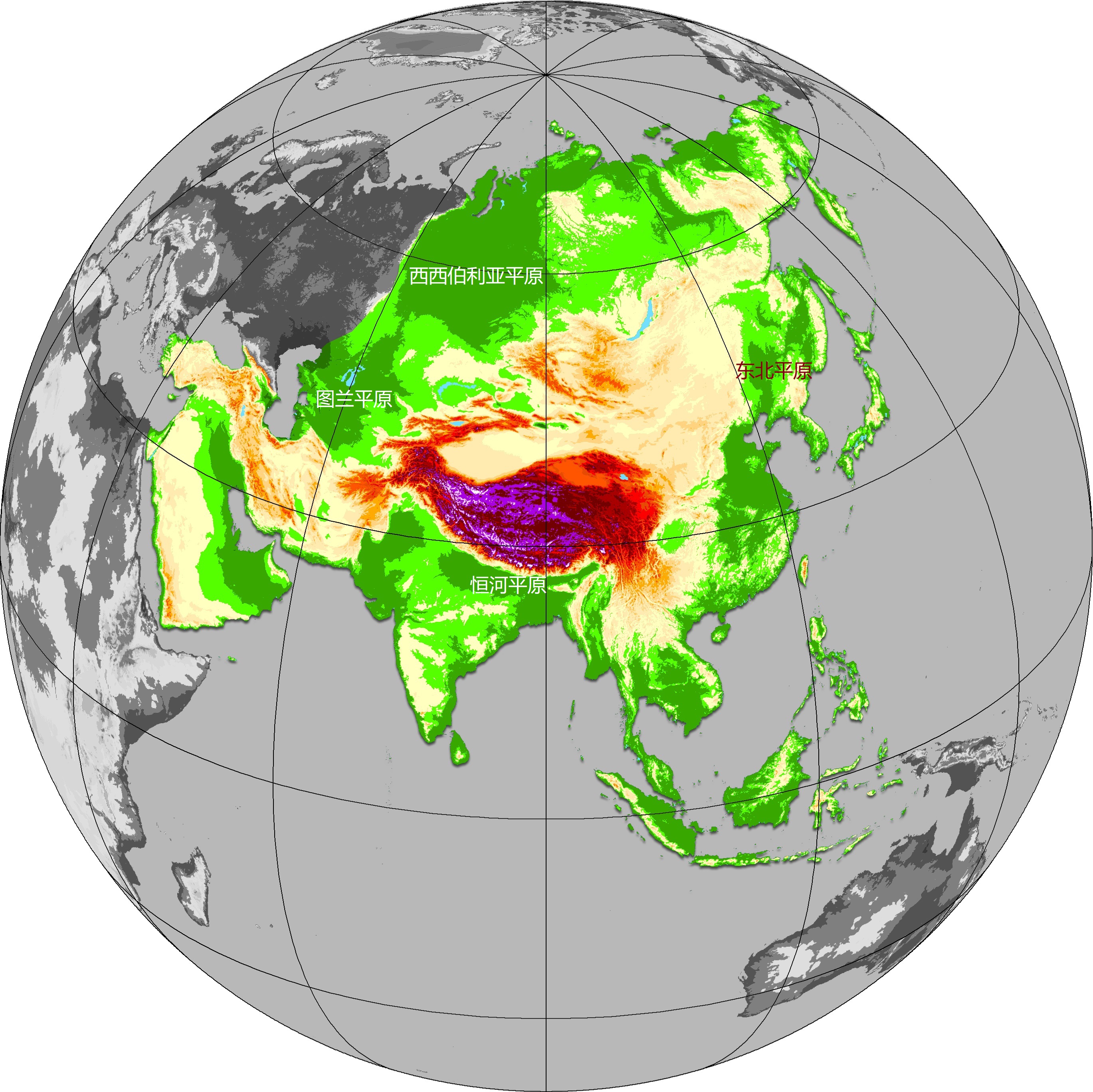 不过亚洲的平原并不分布在亚洲中部地区,而是大多分布在亚洲的四周边缘地区。形成这种分布情况的主要原因,是由于板块运动的结果,由于亚洲南部的南亚次大陆往北撞击亚欧大陆,使得陆地板块之间相互碰撞隆起,形成了巨大的褶皱山系,以及世界屋脊青藏高原,从而导致亚洲中部地区以高原、山地地形为主,整体地势呈中部高四周低的格局。