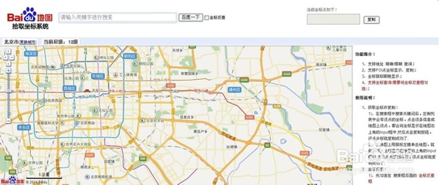 打开百度地图“坐标拾取系统”:输入网址”http://api.map.baiduu.com/lbsapi/getpoint/index.html“,进入”坐标拾取系统“