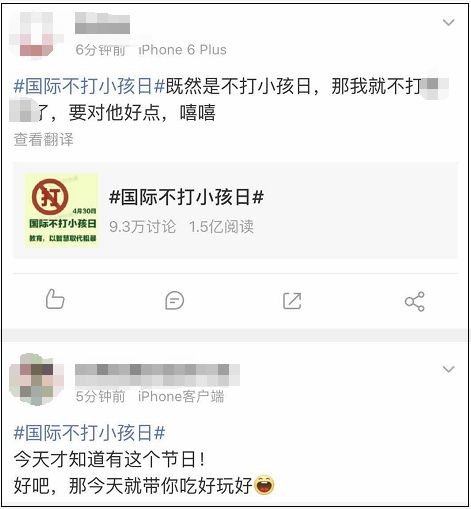 其实,每年的4月30日都是“国际不打小孩日”,也被称为“无巴掌日”,最早由美国一个反体罚民间组织发起,旨在宣传正面管教方法,倡导儿童人权。