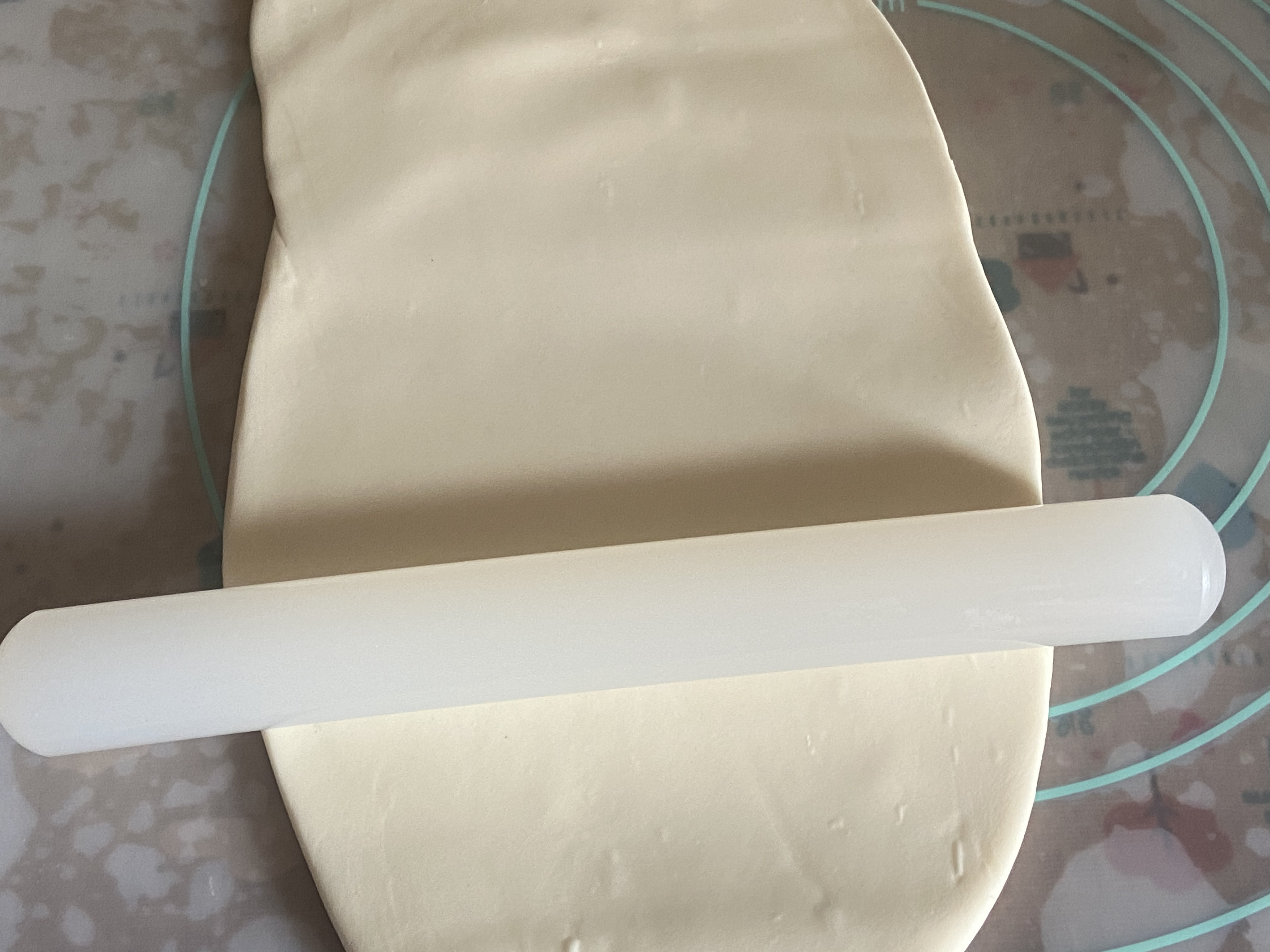 3.从最粗的8号开始,反复按压直至面片光滑,再一点点变薄。
