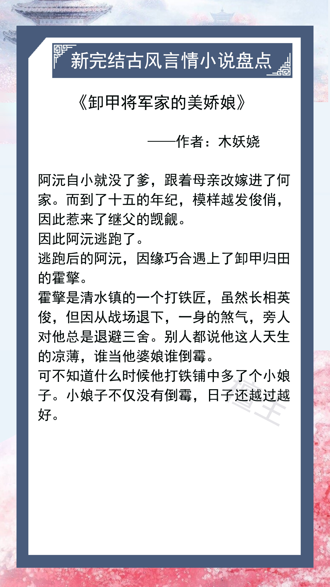 就这样,筛选出这五本新完结的古代作品,献给喜欢阅读的书友们!