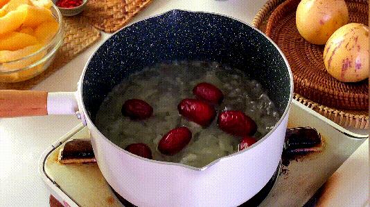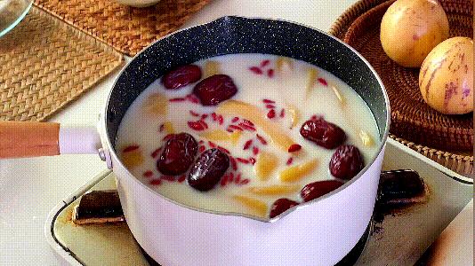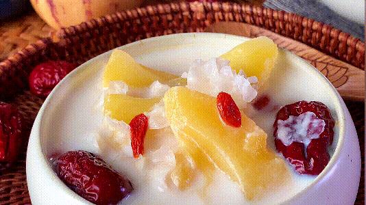 人参果3个 / 清水300ml / 冰糖45g / 泡发银耳35g / 纯牛奶300ml / 红枣8颗 / 枸杞少许