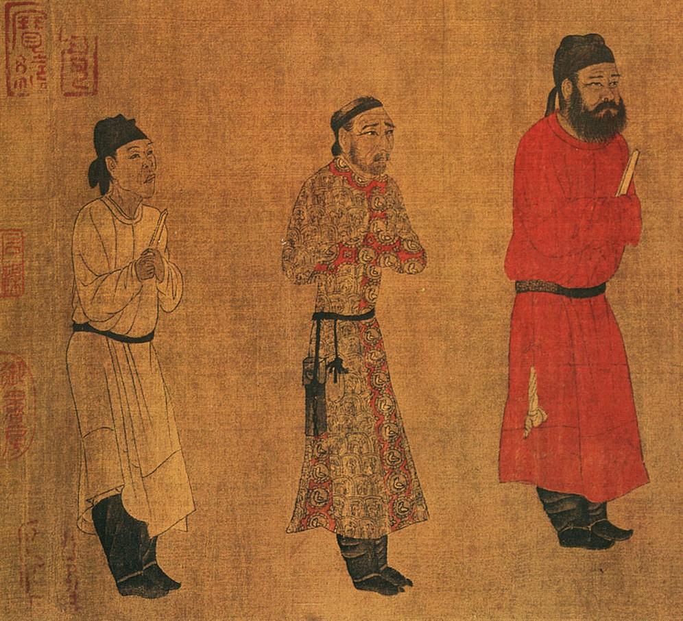 三毛仔OS:考考大家?画中哪个才是使臣呢?左边红衣男子?——NO,那是典礼官,往后才是吐蕃使臣。 再往后是通译官。