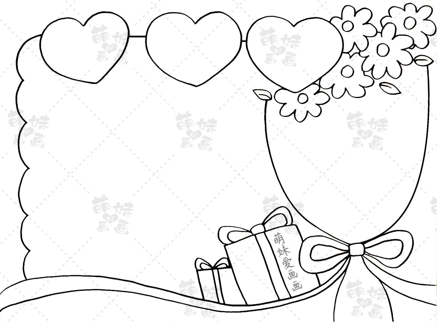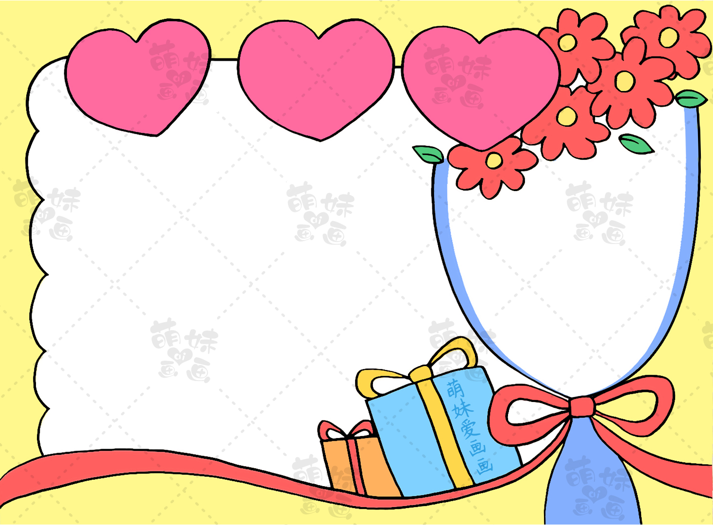 我们选择爱心、花束、波浪线作为手抄报的文字边框,这样的边框既能呼应母亲节的主题,又特别的好看、有创意。