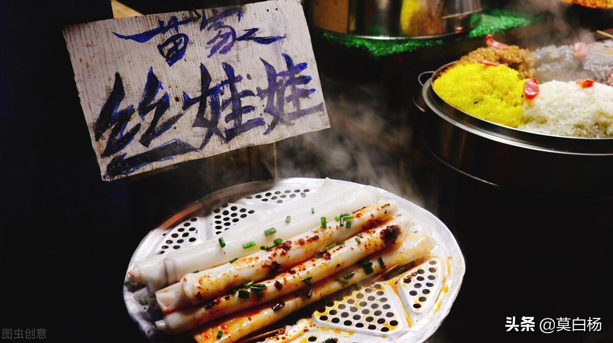 (1)丝娃娃∶ 贵阳特有的小吃,用手掌大小、烙得很薄的面皮裹着各种切成丝的素菜和调料,是贵阳颇受欢迎的小吃,冬季还有丝娃娃汤。
