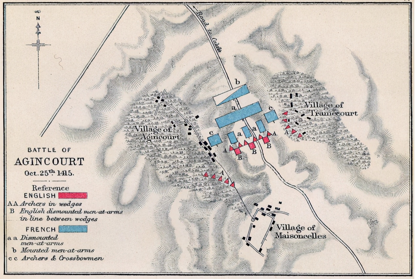1415年,英格兰国王借法国王室陷入混乱的机会发动了进攻。此时的英格兰国王是亨利五世,他在阿金库尔战役大胜法军,并和勃艮第组成同盟征服了诺曼底,法国王太子查理此时逃往法国南部。在英格兰和勃艮第咄咄逼人的态势下,法国王太子不得不接受继承权被剥夺的屈辱条件,合约规定在法王查理六世死后王位将由英王亨利五世继承,亨利五世甚至与法国公主凯瑟琳结婚并生下一子。似乎英法合并已经是在所难免的了,然而意想不到的是亨利五世竟然先离开了人世,在英王死后不久查理六世也去世了。这样一来,继承权又成为了问题的焦点。