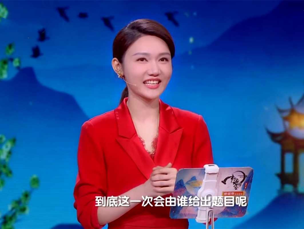 结果,黄嘉晨给出的答案是“不要人夸颜色好,只留清气满乾坤”。主持人龙洋宣布,答对了!