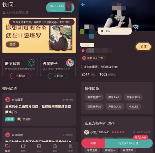 “最晚一单是凌晨四五点。”在小吴的客户里,找她咨询感情问题的人占了一大半,而这些客户里就有不少会在半夜里给她打电话,占卜自己的情感问题,但有些占着占着就变成了倾诉。