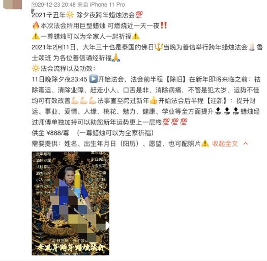 一场跨年蜡烛法会,用巨型蜡烛燃烧一天一夜,只要花888元就能为家人祈福。