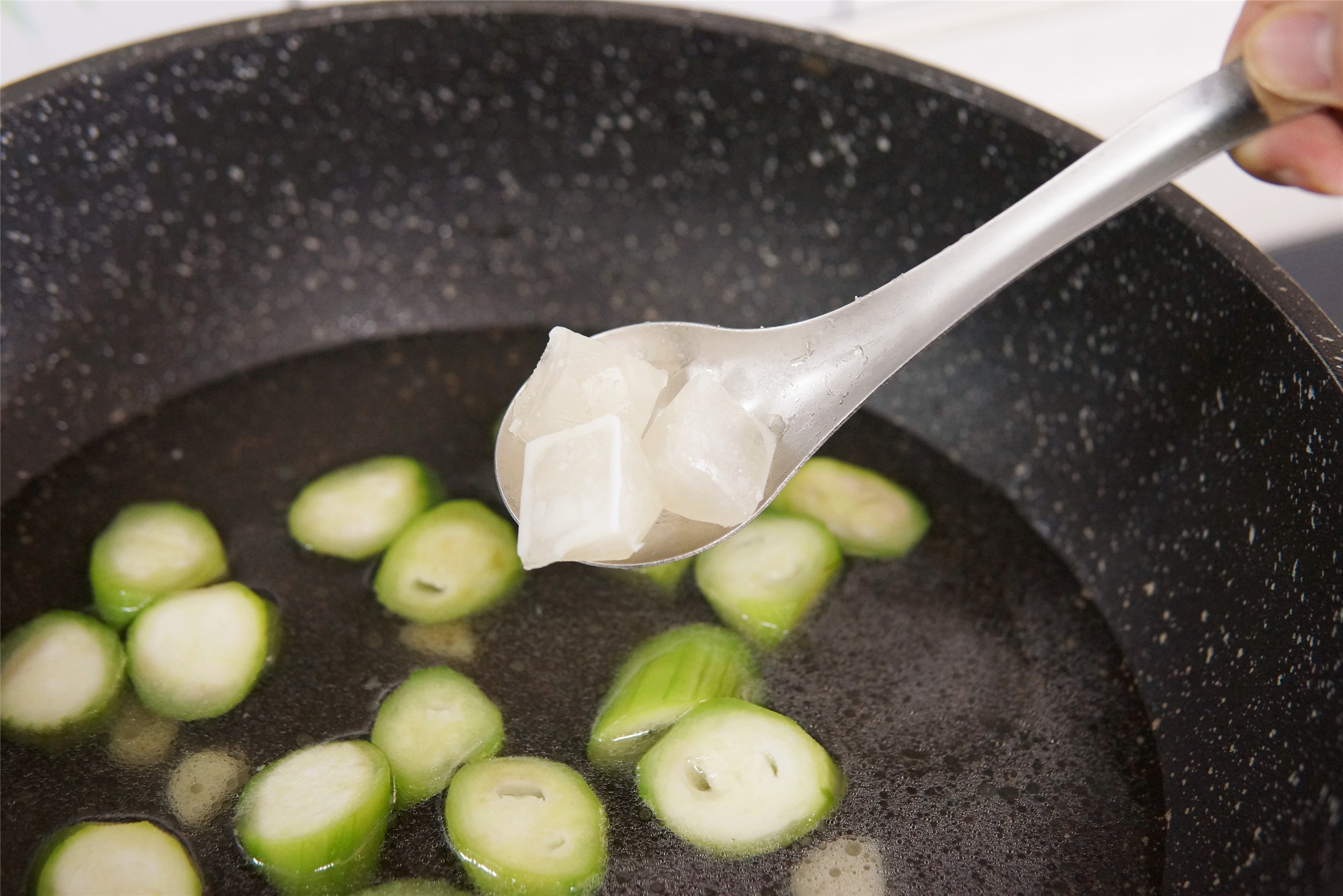 小贴士:这里的高汤块是老井提前做好的,一般家庭炒菜、煮汤时放上两块,提鲜增香使菜品更鲜美,想学高汤的做法可以看我前天发布的菜谱,很实用的家用高汤做法,如果家里没有高汤,也可以不加。