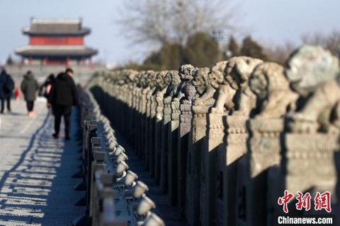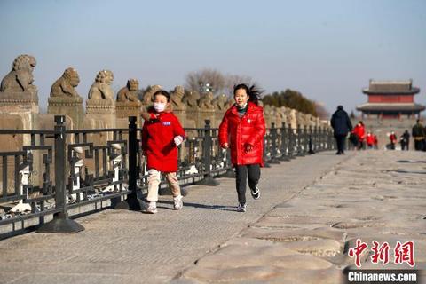 中新网北京2月27日电 (记者 杜燕) 北京天安门西南约20公里处的卢沟桥上,两名身穿红色羽绒服的小姑娘手牵手,一蹦一跳,数着桥柱上石狮子的数量。春日暖阳里,石狮子看得见眼前一片恬静中的欢快,也记得起84年前打破城内平静的枪炮声,还将目睹这里变成“具有文化遗产价值的世界和平纪念地”。