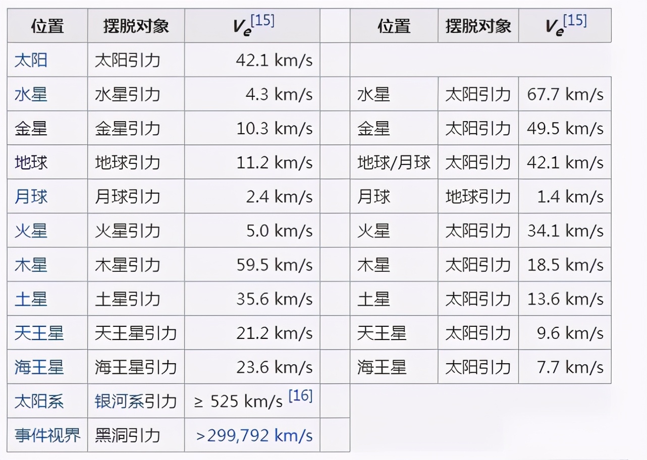 第三宇宙速度:16.7千米每秒,也是逃逸太阳系的速度。