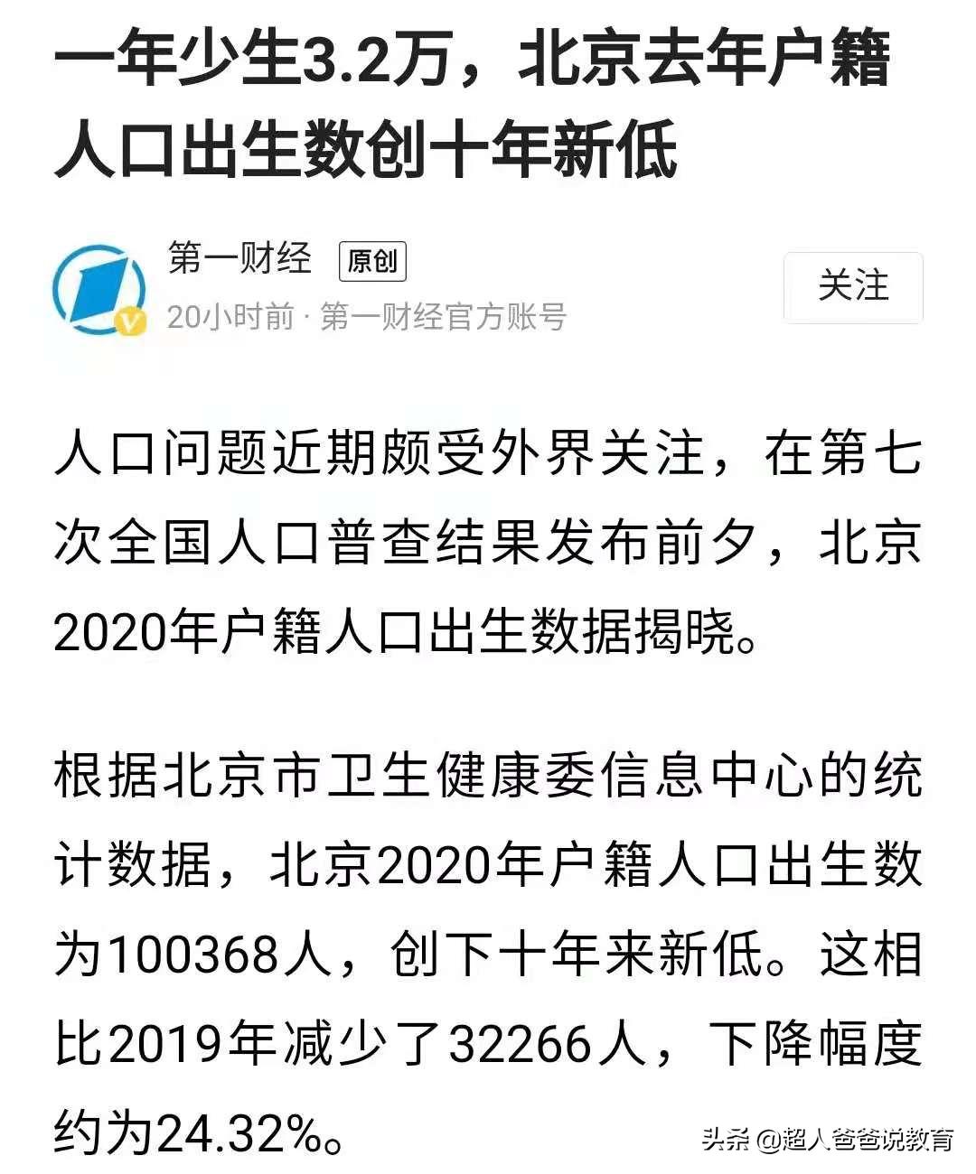 年初公布的2020年出生人口,比上年下跌15%,被媒体称为“断崖式”下跌。就在昨天(4月27日),北京卫健委公布2020户籍人口出生数据,相比2019年下降了约24%,创下十年来的新低。