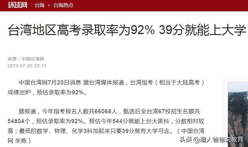 中新网2008年的“旧闻”,我国台湾省的大学录取,创下了最低分数线7.69分,五科一平均,每科连一分都不到。
