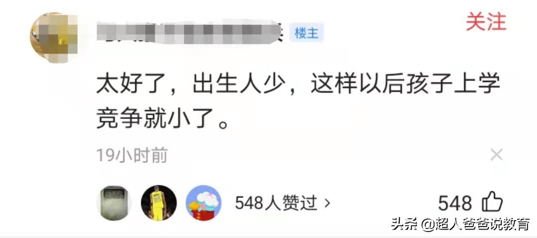 这个说法,在我截图时得到了548个赞。可见,当前孩子上学的竞争,是比较让家长们痛苦的,竞争小了,他们很高兴。