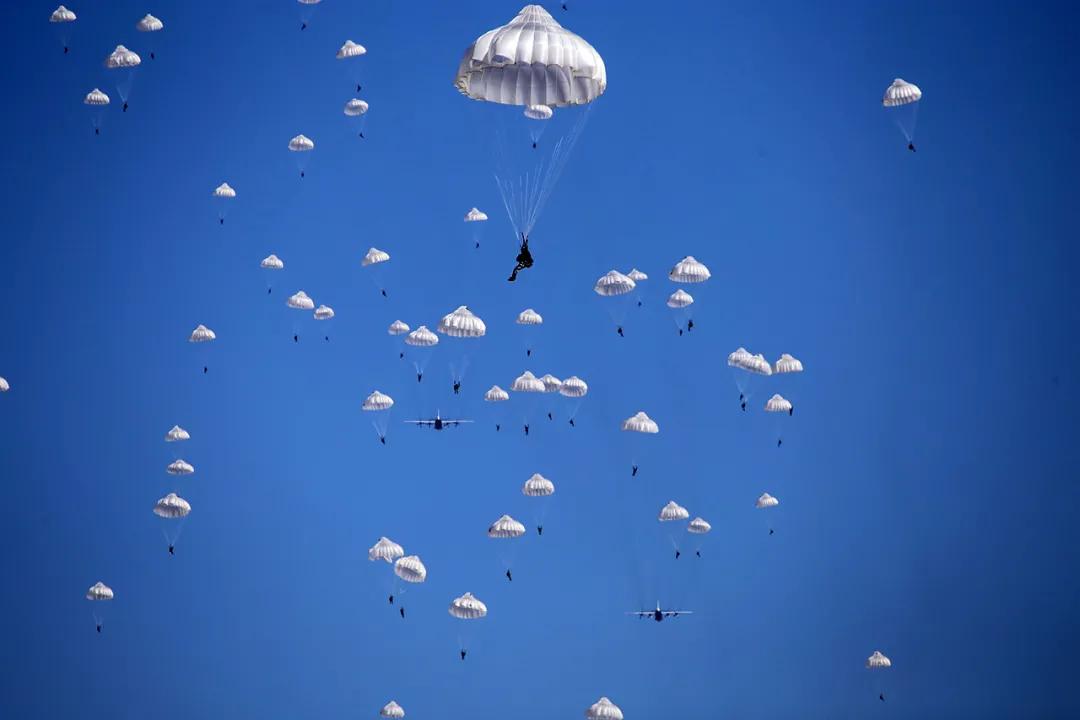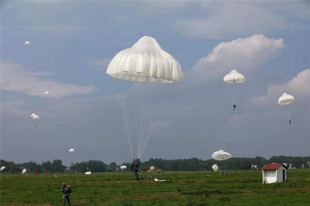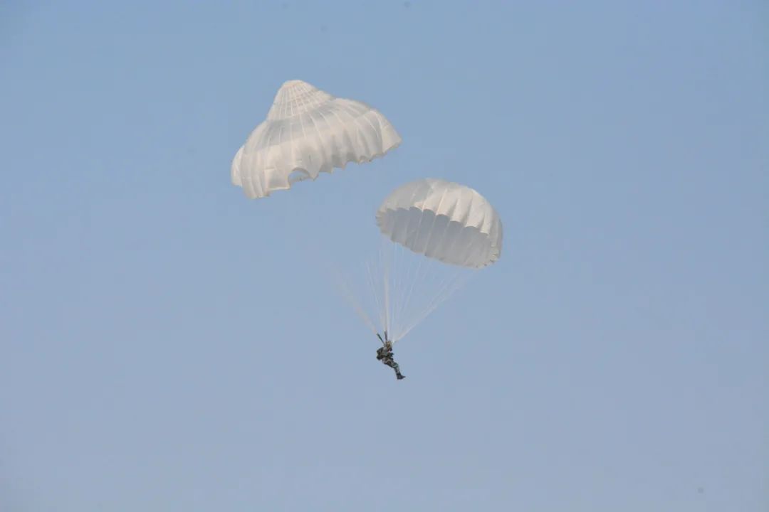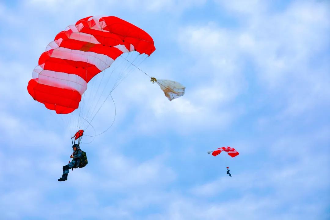 伞花朵朵神兵降,落地猛虎卷平岗。