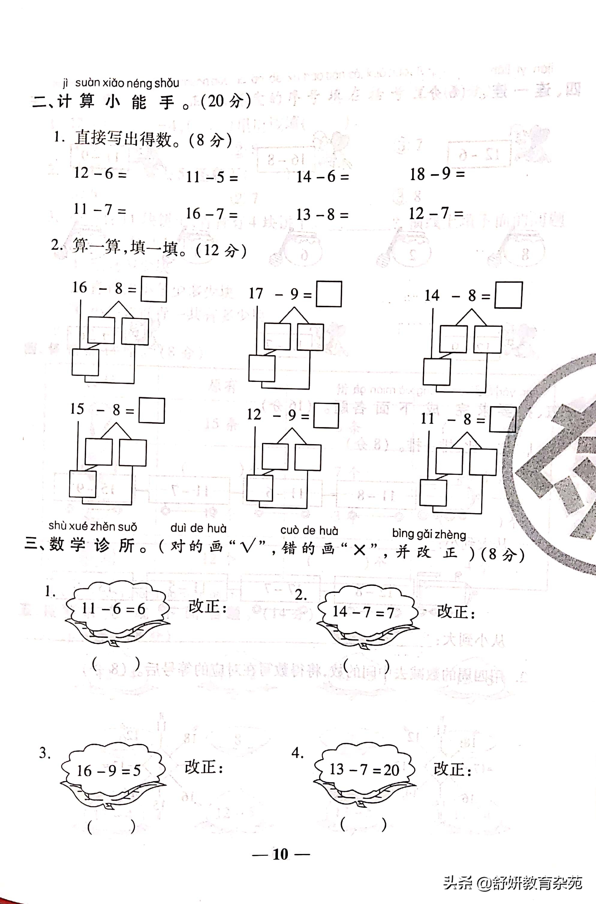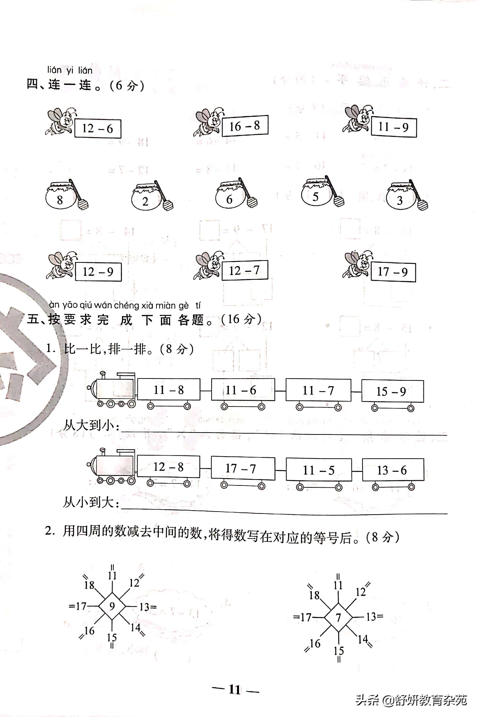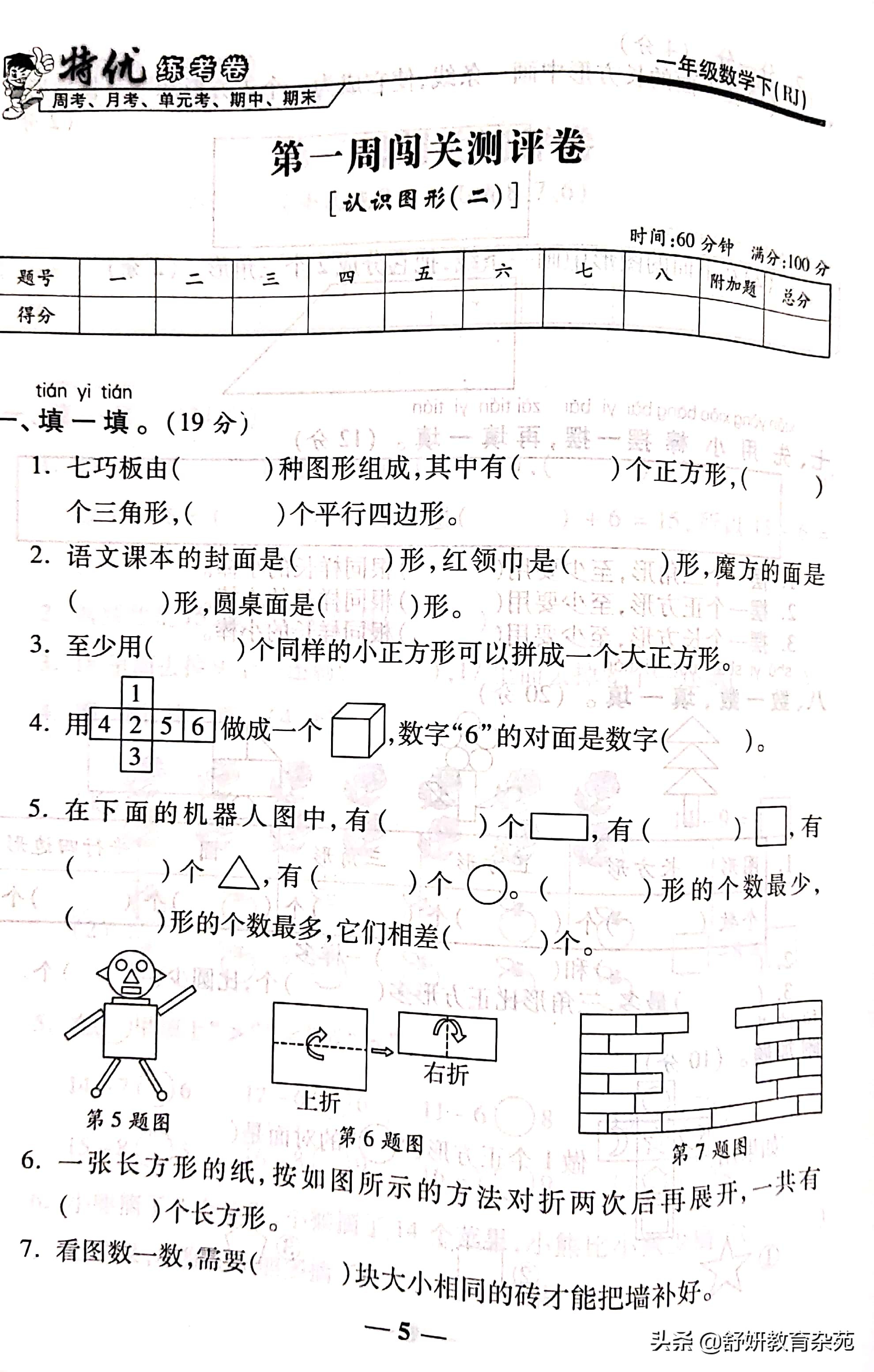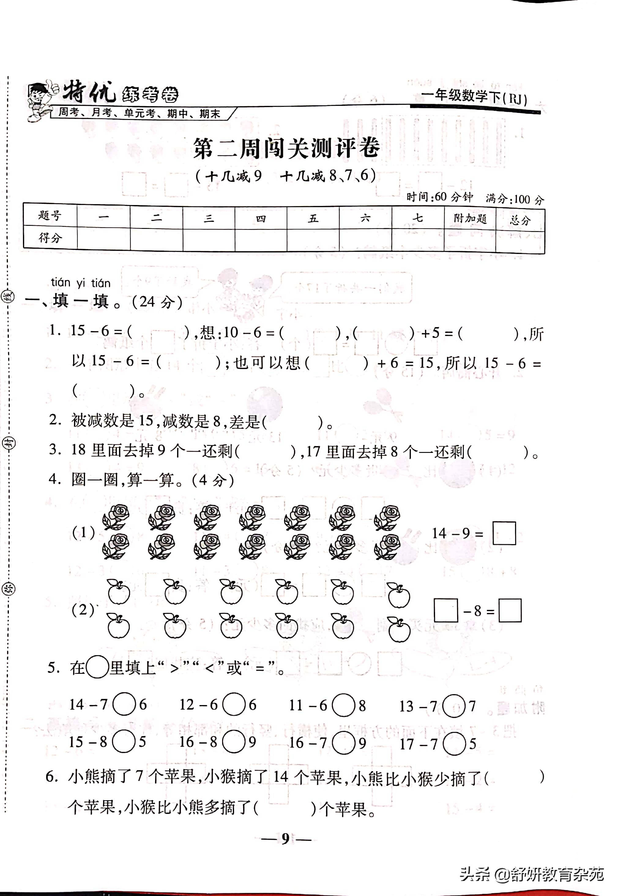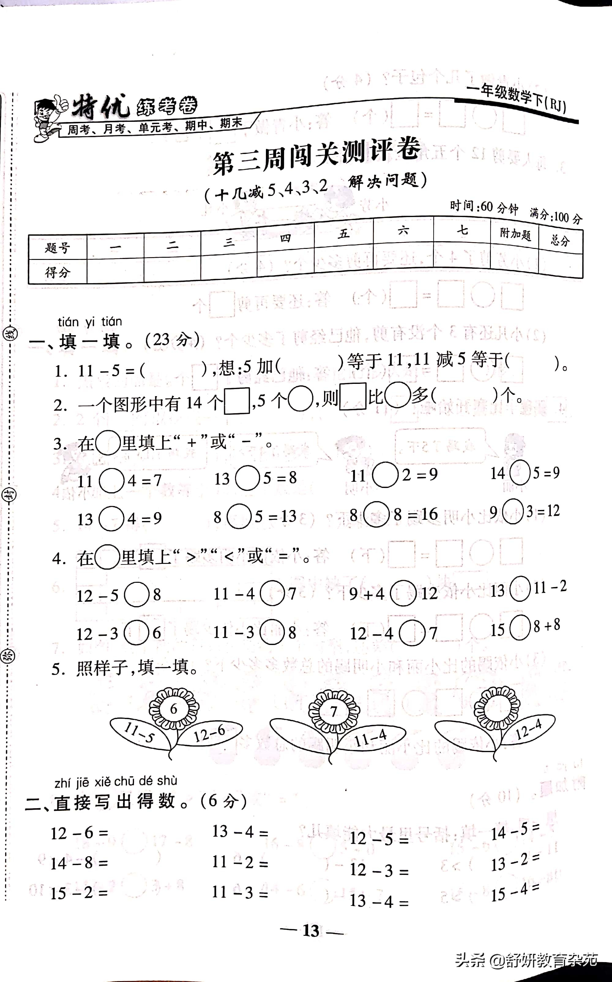 熬夜给大家整理了一年级数学下册第一二三周的周考卷。