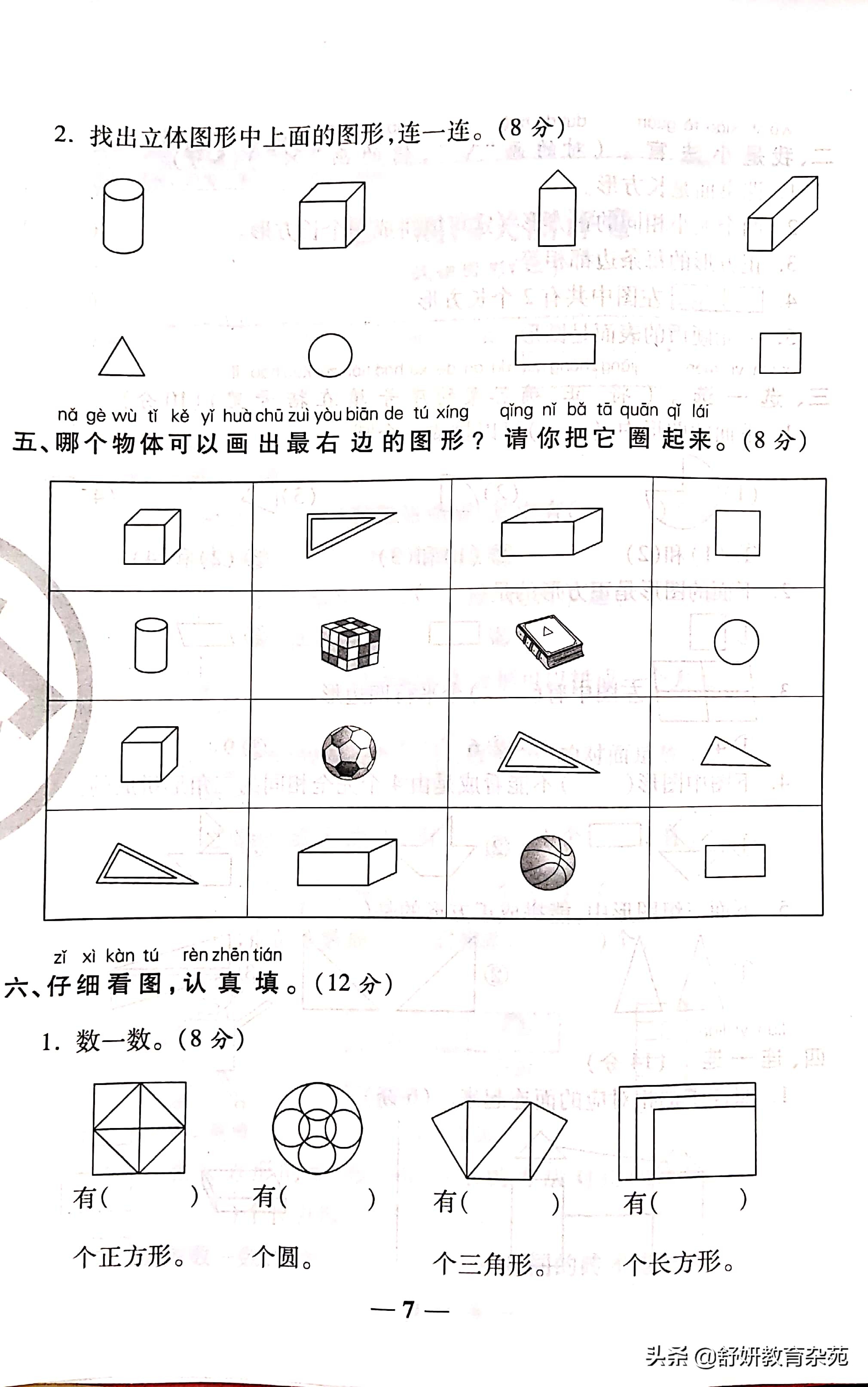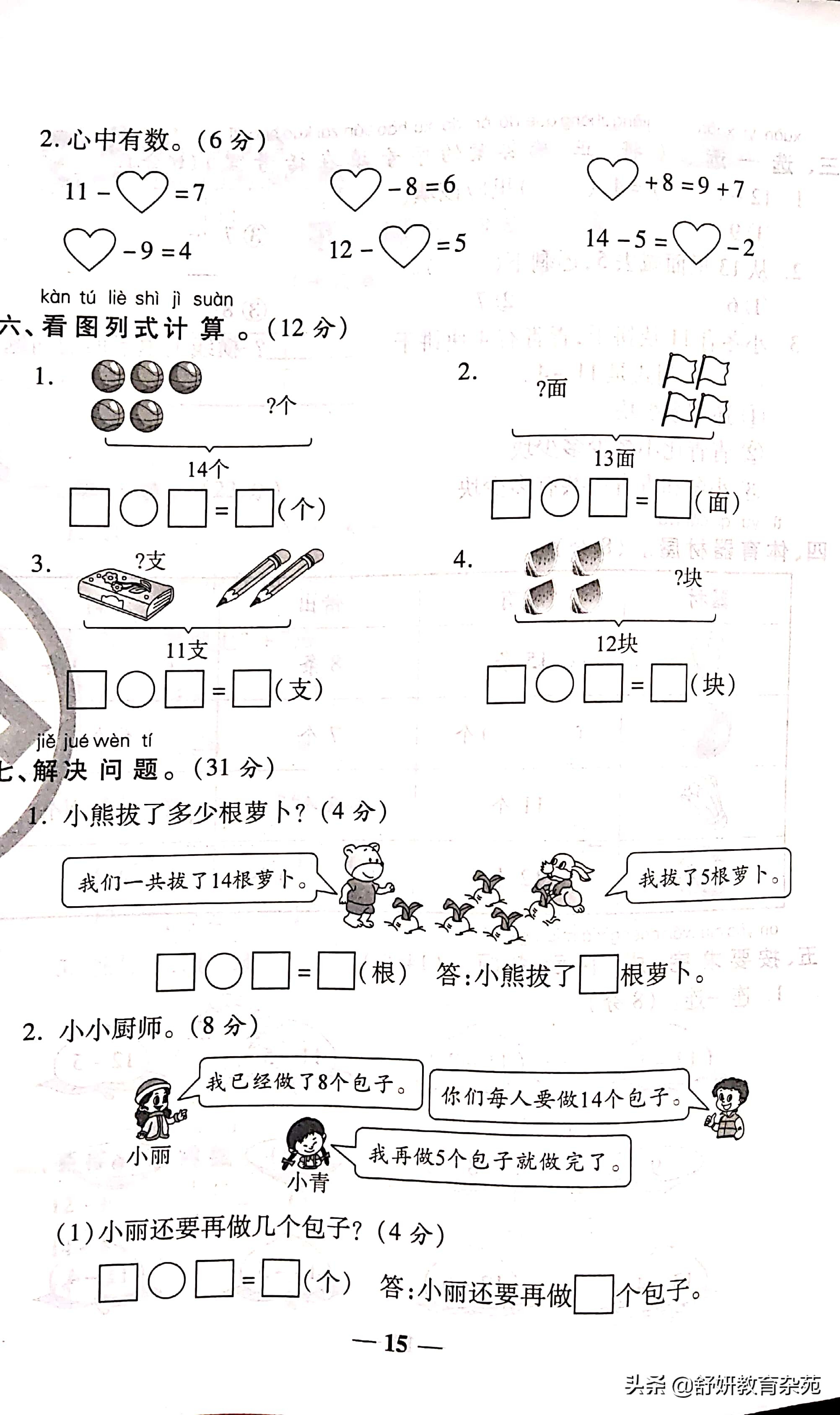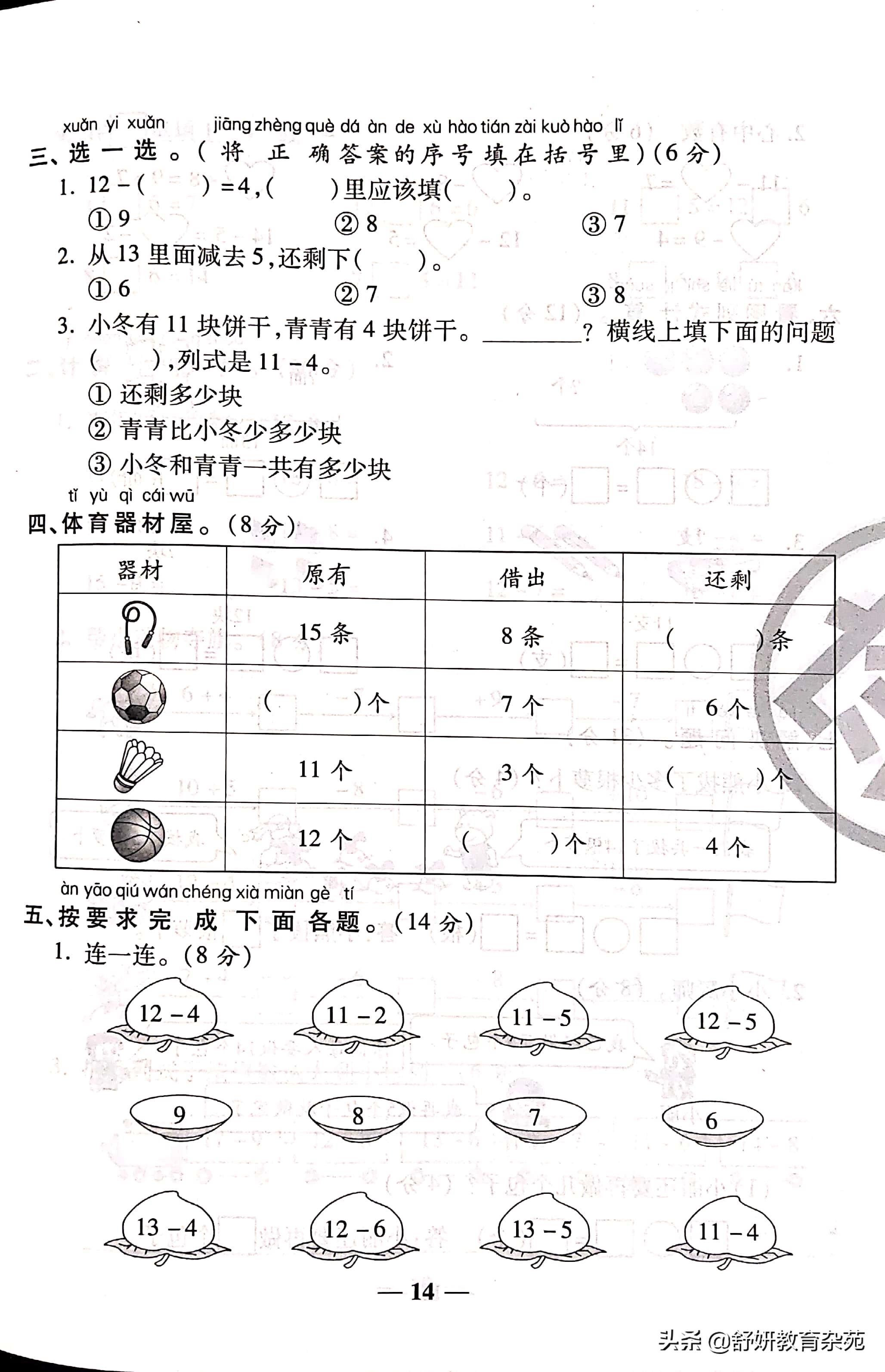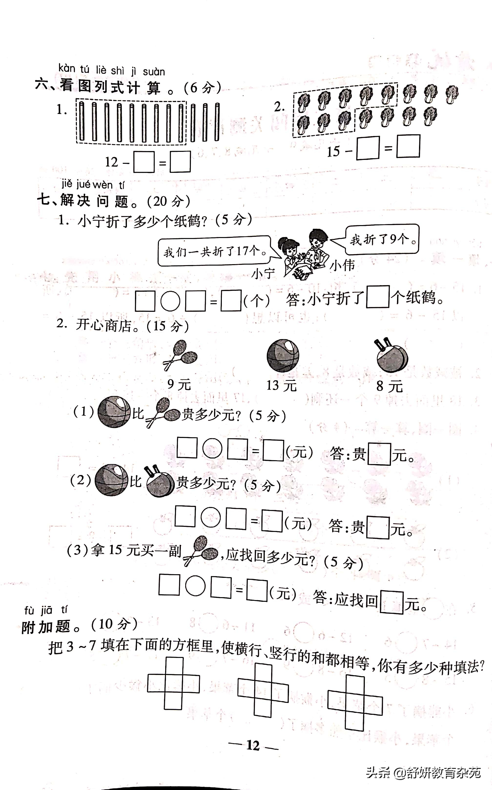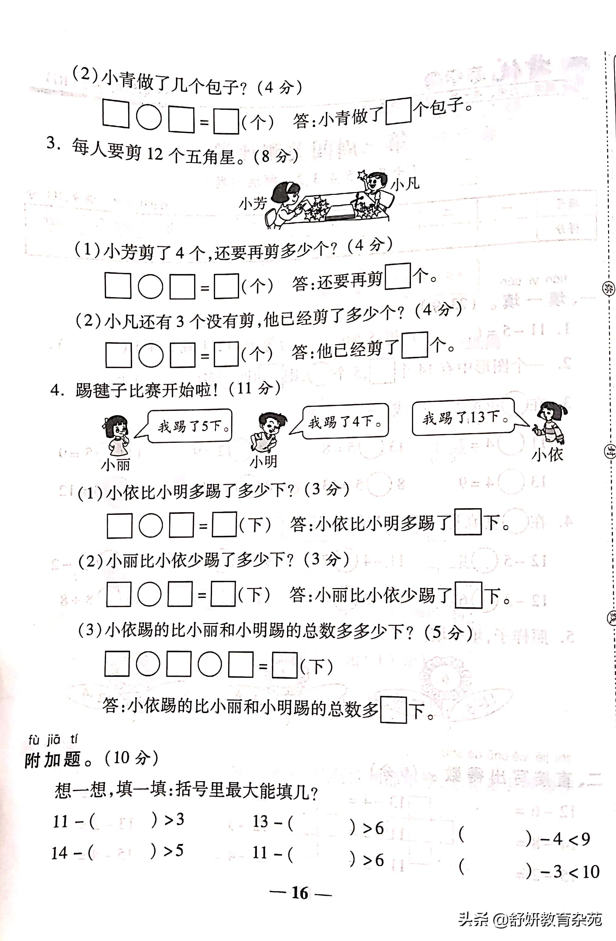 熬夜给大家整理了一年级数学下册第一二三周的周考卷。