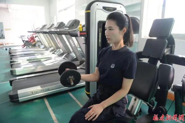 福建省唯一女警飞行员郑璐正在锻炼。郑宇涵 摄