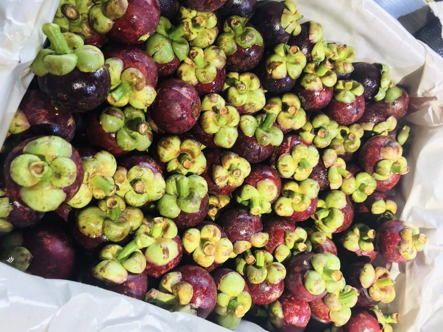 一般来说,新鲜采摘下来的山竹果蒂都是绿色的,这跟我们挑选蔬菜的道理差不多,颜色越翠绿有光泽则代表越新鲜,鲜甜多汁,肉质也好,反之如果周围的四瓣果蒂都发黄、干枯,颜色黯淡无光,说明这个山竹放置的时间较长,不是很新鲜了,最好就不要购买了。