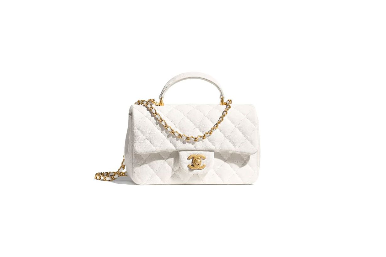 “包如其名”,Flag Bag With Handle手袋的顶部多了一个皮革把手,看似与Coco Handle极为相似的外观却是以Classic Flag包款为原型,在容量上却比Classic Flag和Coco Handle都更为充裕。除了结合多款Chanel经典包款的设计外,配色也迎来了革新,除了经典的黑白,此次Virginie Viard还为Flag Bag With Handle增加了硬核的金属色和软糯的奶油白色,由内而外散发出“新生儿”的气息。