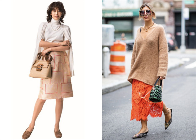 还建议用橙色的同色系搭配,如果稍微有点色差,改变上下色调,或用皮带标记腰部,则会呈现层次感,鞋子搭配米色,或裸脚露出肤色,就会散发出高雅的女人味风格。