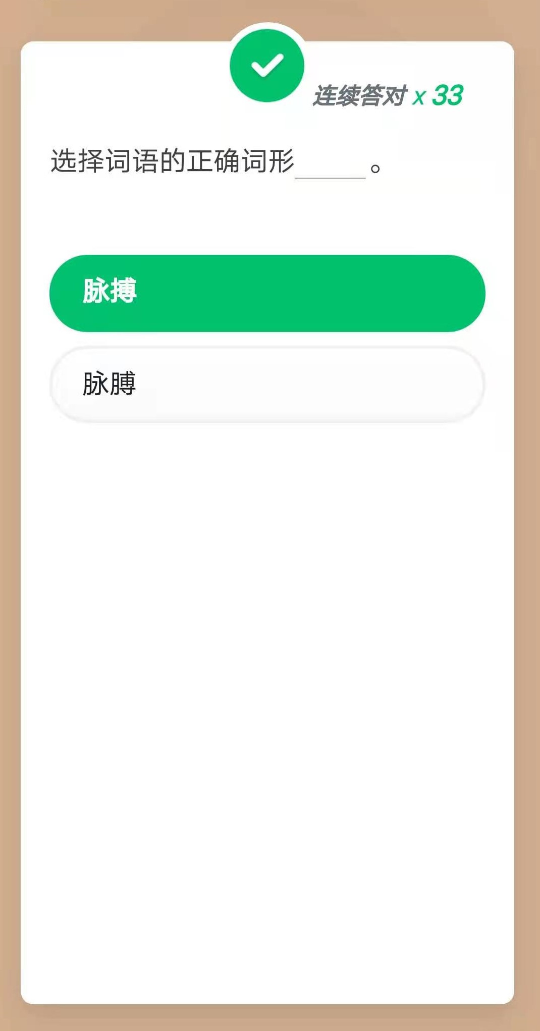 6 | 脉搏 | 脉膊 | [mài bó] ,心脏收缩时,由于输出血液的冲击引起的动脉的跳动。 |