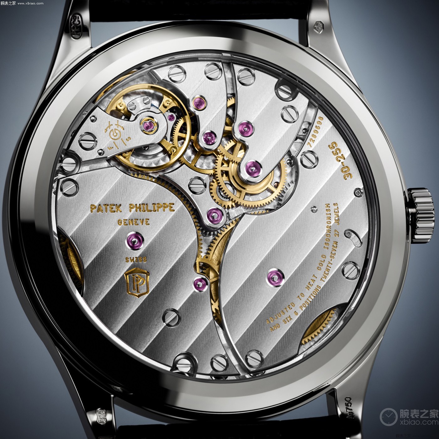 百达翡丽新一代30-255手动机芯,尺寸31毫米,尺寸远大于21.5毫米的215机芯,适合更大尺寸的表壳。双发条,摆频28800次/时,动力65小时,动力大幅提升。同时在厚度上,新型30-255手动机芯的厚度,并没有增加,30-255机芯和老款215机芯都是2.55毫米,让手表厚度比较薄。新型30-255手动机芯,同样使用无卡度砝码微调摆轮,误差-3/+2秒每天,符合百达翡丽印记标准。
