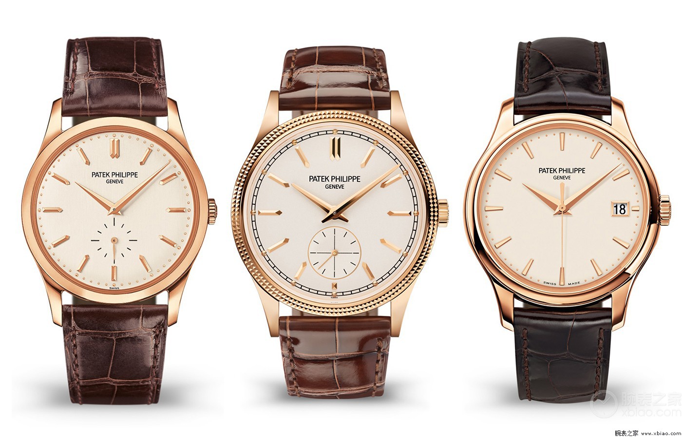 百达翡丽Calatrava系列男表,三大“简单表”,左到右,5196R、6119R、5227R。