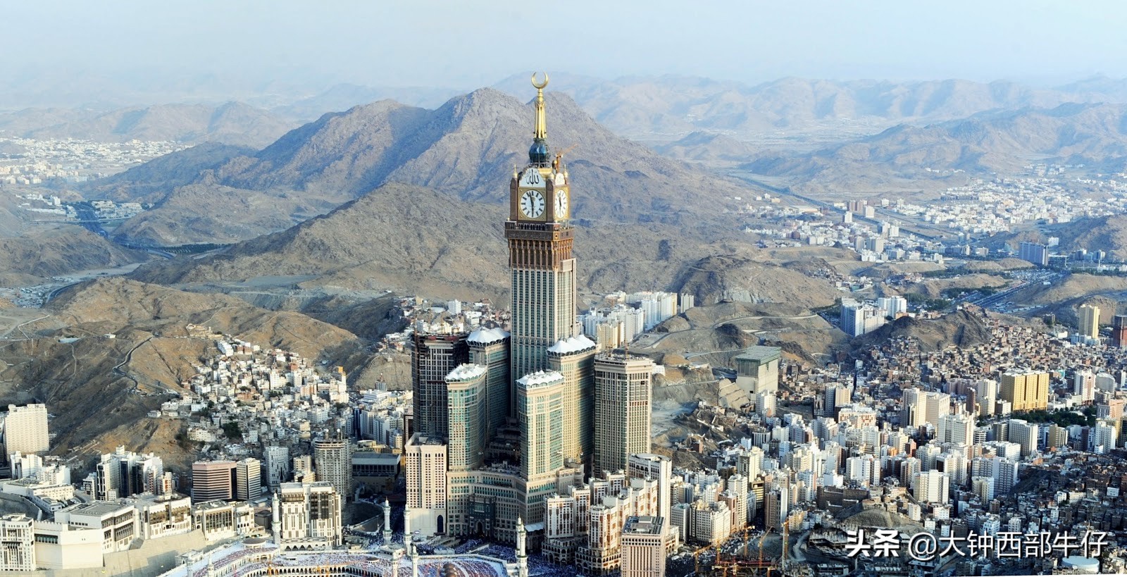 沙特阿拉伯麦加的麦加皇家钟楼坐落在伊斯兰教圣城的心脏地带。为朝圣期间每年前往该市的数百万穆斯林提供临时住所。它位于大清真寺旁边,在最繁忙的时期平均有200万游客。该建筑在中央塔楼共有858间酒店客房,分布在地上120层,下面还有三层。楼顶附近安装了四个巨大的钟面,并保持着世界上最大和最高钟表的记录。到了晚上,一百万个LED灯照亮了钟面。
