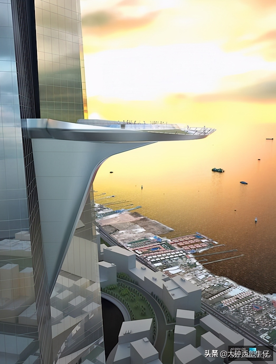 大厦的形状以其倾斜的角度线连结在四个主要功能区上:办公室到住宅,住宅到酒店,酒店到皇冠以及从皇冠到天空,大厦共111层(另外地下五层),分为办公空间,355套公寓和251间酒店客房。