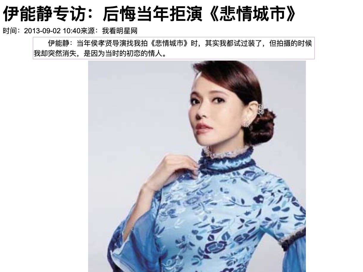 当时台湾著名导演侯孝贤,邀请伊能静参演《悲情城市》,和梁朝伟合作。