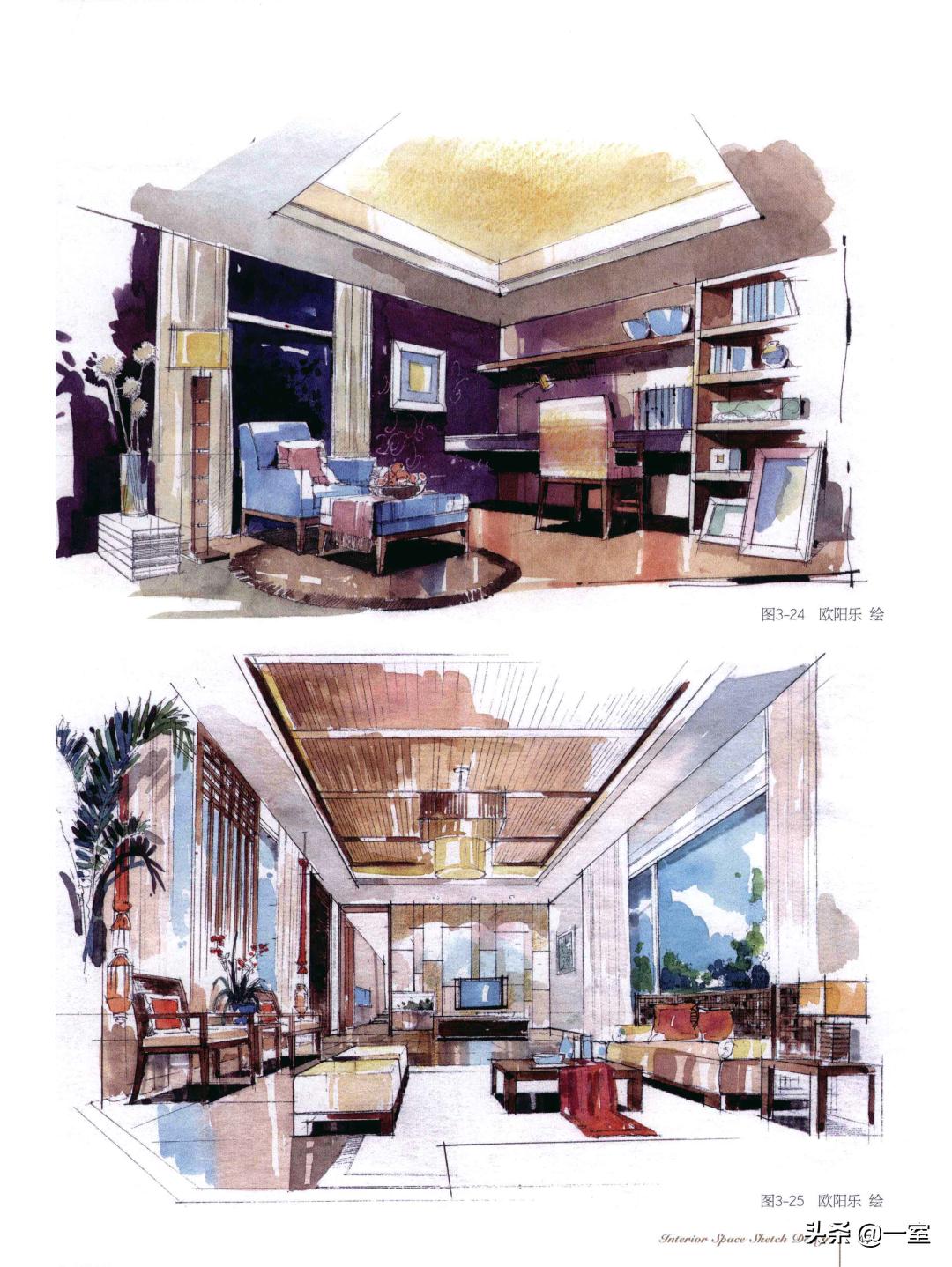 对于室内空间来说,想要准确的表现空间形态,透视必须要抓准,室内手绘中常用的就是一点透视和两点透视。