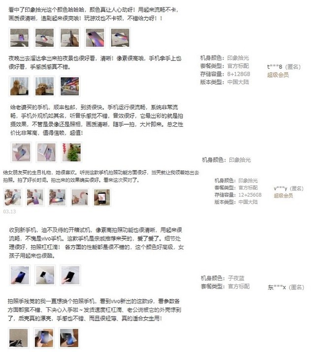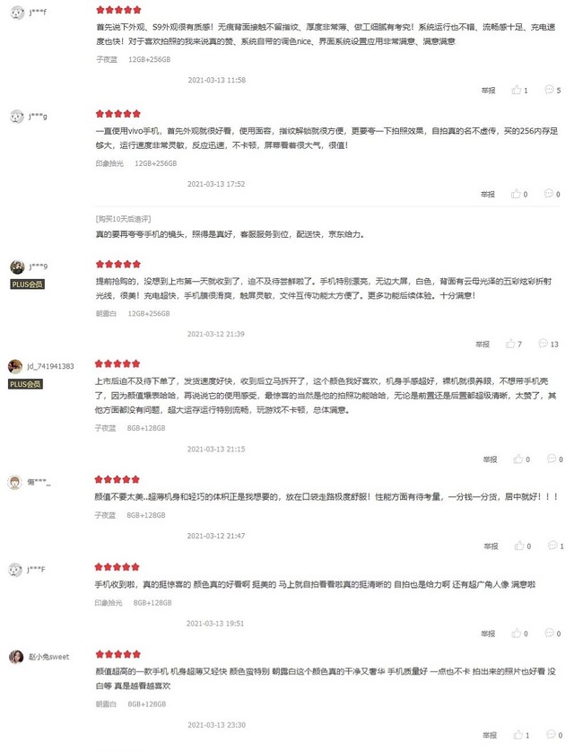 智能手机作为消费级电子产品,其用户口碑堪称最好的名片,同时也是产品力的具象化展现。可以看到,开售几日来,vivo S9在各大电商渠道收获了较高的用户评价。其在vivo官网好评度高达100%,在京东、苏宁、天猫三大平台的总体好评度也接近100%。下面就让我们一起看看,首批用户都是怎样评价vivo S9这款新品的。