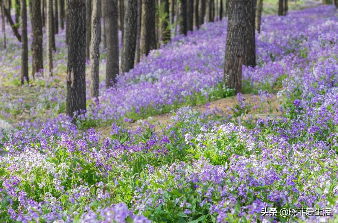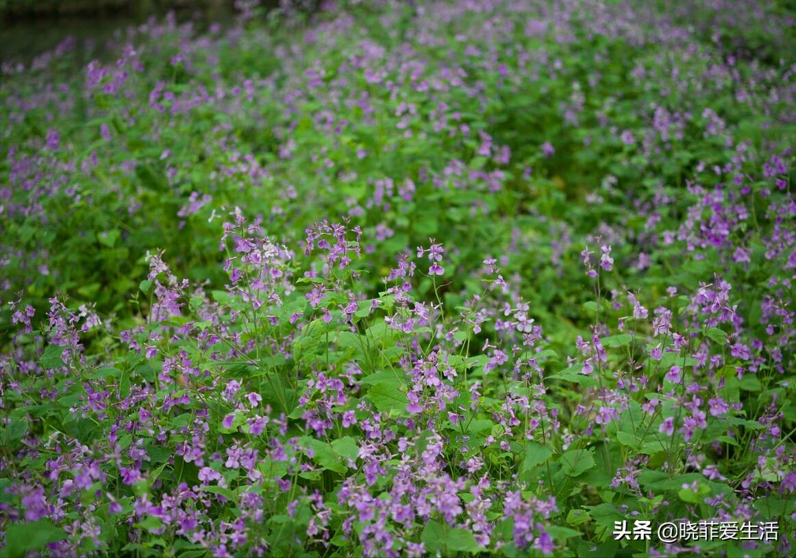 而且,诸葛菜是北方地区不可多得的早春观花、冬季观绿的地被植物。这种野菜的观赏价值很高,春天是它开花的季节,看上去就是一片紫色的花海。