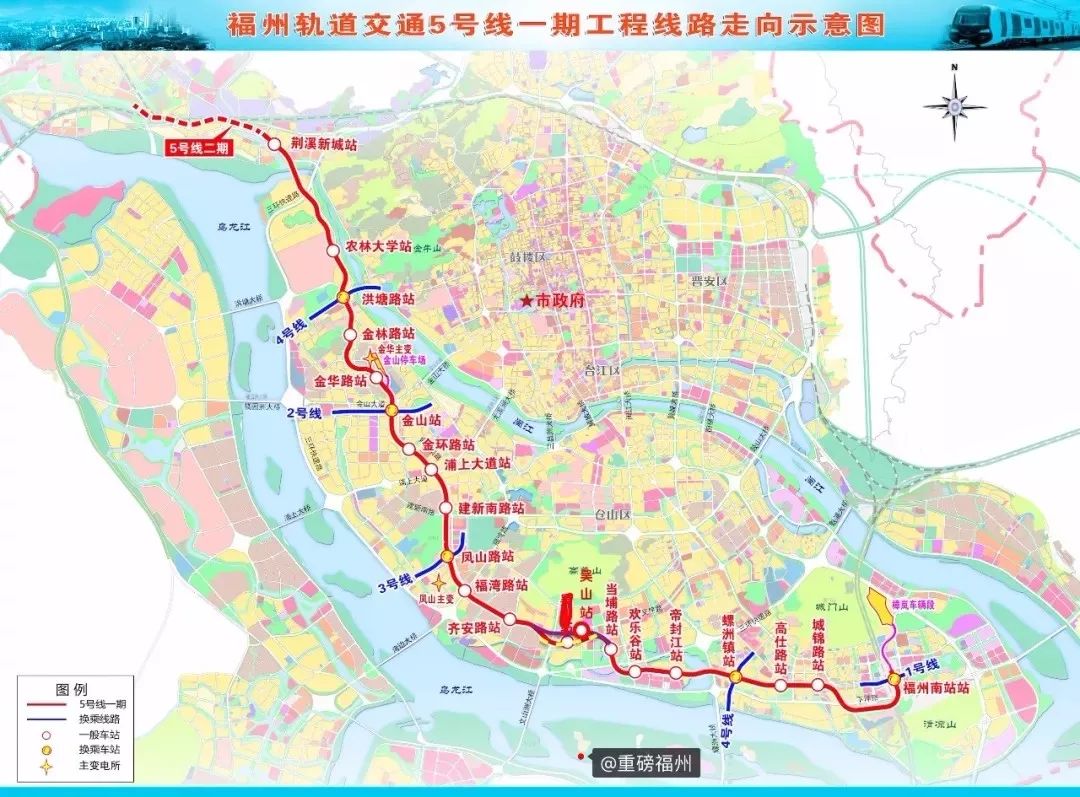 福州地铁5号线途经闽侯城区、荆溪新城、金山片区、义序片区等组团,连接奥体中心、福州南站等重要节点。