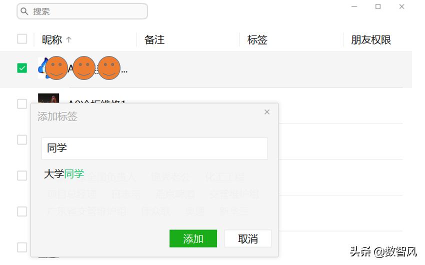 ④、在添加标签页面中,输入标签名并点击“添加”即可。如果想要的标签已经有了,只需要选择系统匹配出来的标签即可。