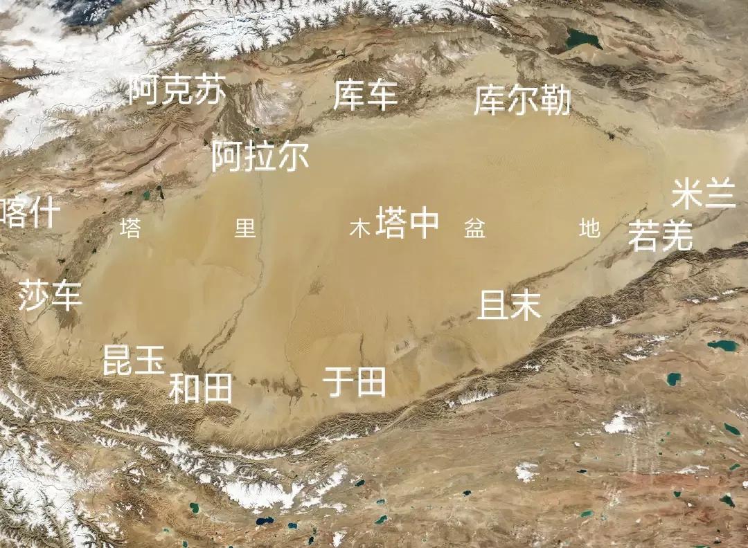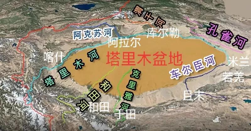 比如塔里木周边的城镇群都分布在塔里木盆地边缘河流出山的冲击扇区域:孔雀河冲积扇(库尔勒市)、渭干河冲积扇(库车市、拜城县、沙雅县、新和县)、阿克苏河冲积扇(阿克苏市、阿拉尔市、温宿县、阿瓦提县)、叶尔羌河冲积扇(叶城县、莎车县、泽普县、麦盖提县等)、克孜勒河冲积扇(喀什市、阿图什市等)、和田河冲积扇(玉龙喀什河和喀拉喀什河的和田市、昆玉市、皮山县)、克里亚河(于田县、民丰县)、车尔臣河(且末县)、若羌河(若羌县)、米兰河(36团米兰镇)。