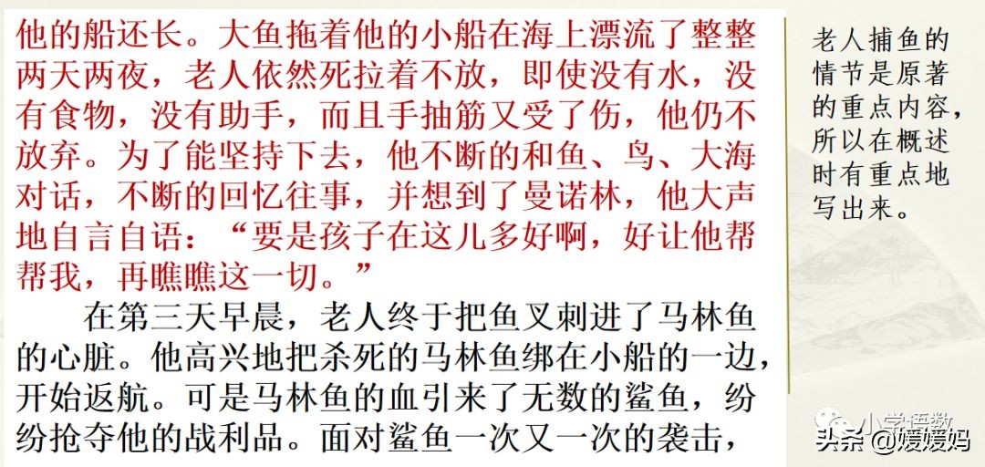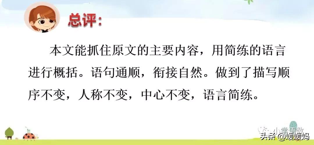 4.取舍主次法。对写了几件事的文章,先分清事件的主次,然后根据主要的来概括它的主要内容。