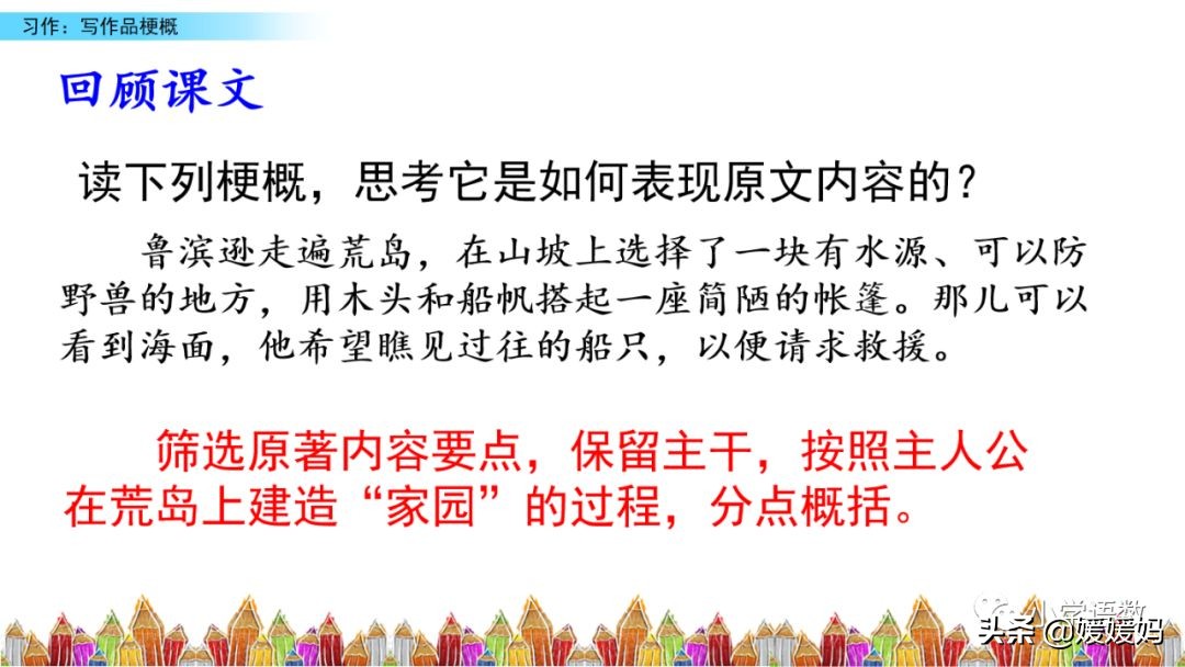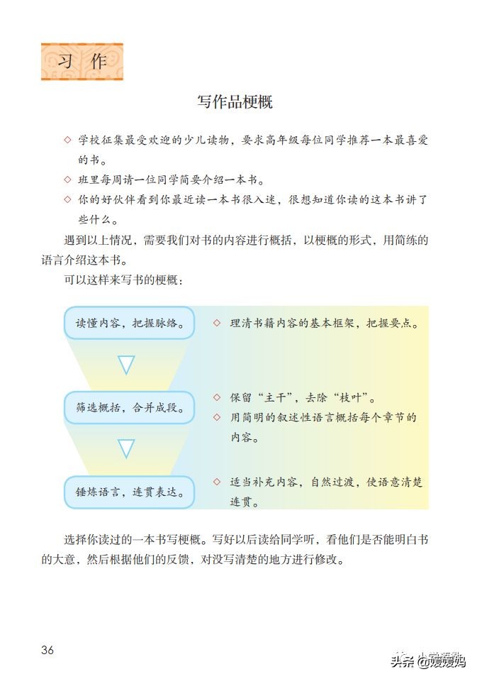 有时候我们需要向别人推荐一本喜欢的书,这就需要我们把书的内容进行概括,以梗概的形式,用十分简练的语言介绍这本书。这次习作,就要求写作品梗概,注意把树的大意介绍清楚。