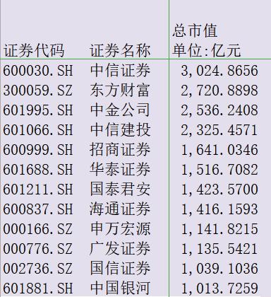 摘要:最令人关注的还是东方财富的强势表现,不仅股价稳步走高,其总市值已经高达2721亿元,超过中金公司、中信建投位居行业第二,直逼中信证券老大的位置3025亿元总市值。