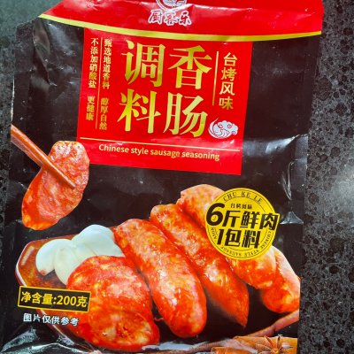 2、在网上买的香肠调料,全套有一包做6斤左右肉的200g调料,棉绳,灌肠器,羊肠衣。
