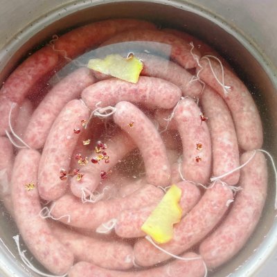 一定要冷水下锅,灌的时候不要罐太紧,羊肠很薄,边灌边推动肠衣下滑就可以了。