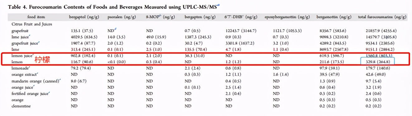 2010年德国发表的研究论文,[8] 测试了日常饮用柑橘类饮料和蔬菜食物,结论是饮食中含的香豆素都达不到光毒性,报道从饮食中发现光毒性的要达到45mg的香豆素,但皮肤直接接触的风险则会较大。