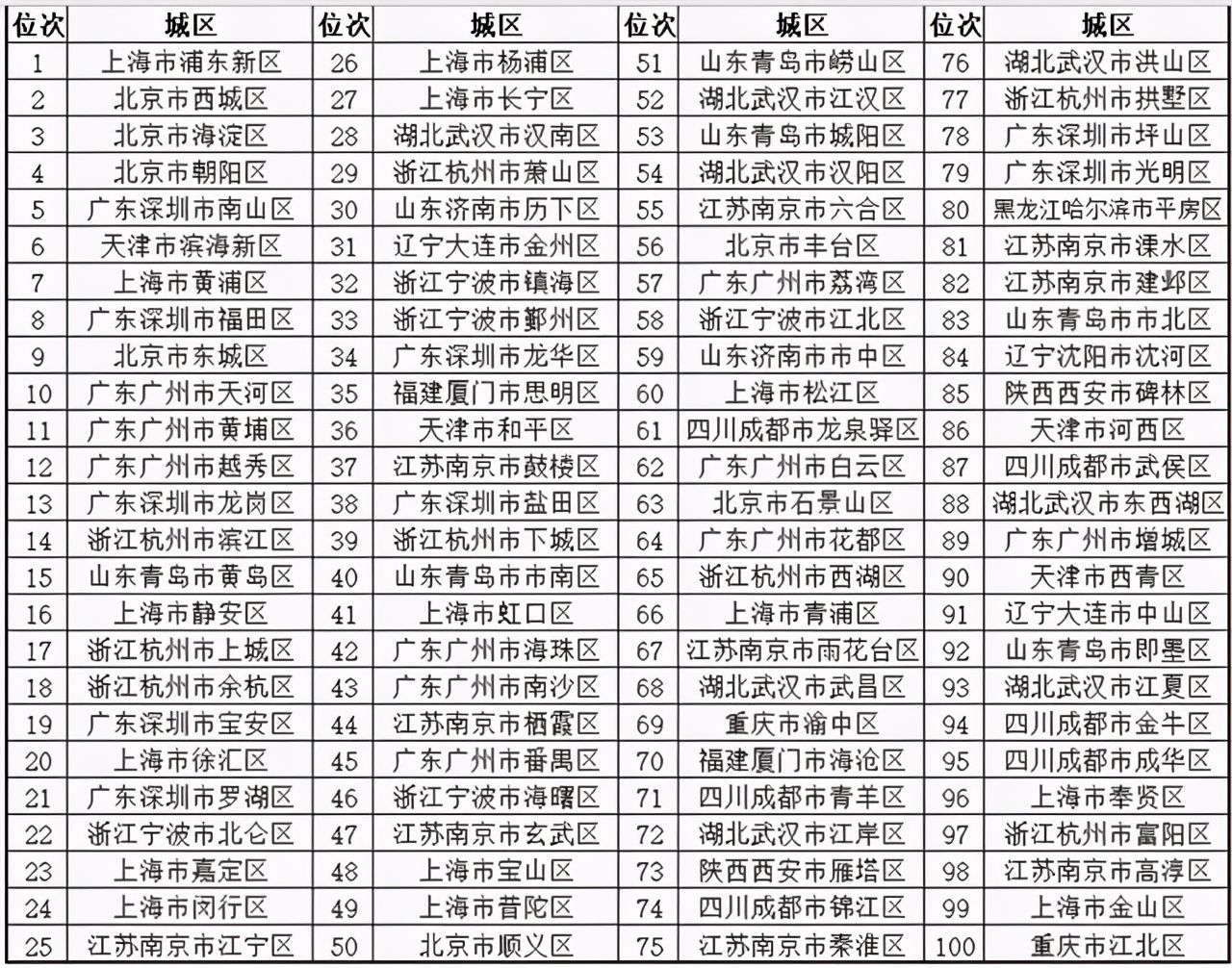 在这个榜单上,上海市浦东新区高居第1名,自然是没什么好说的。