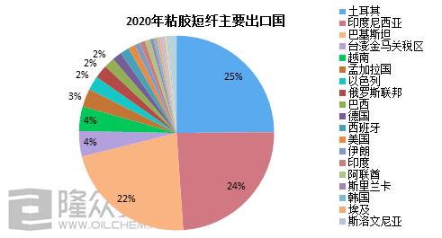 中国粘胶短纤主要依托于内销为主,2020年出口依存度10%,主要出口国以土耳其、印尼、巴基斯坦为主,印度占粘胶短纤总出口数量不足2%。