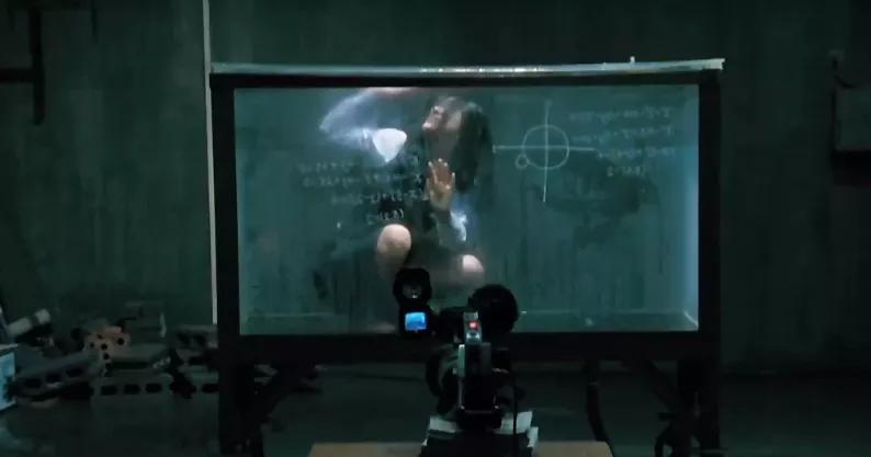 电视上播放一个女生被困在鱼缸里,只有同学们答对题,才放她出来。