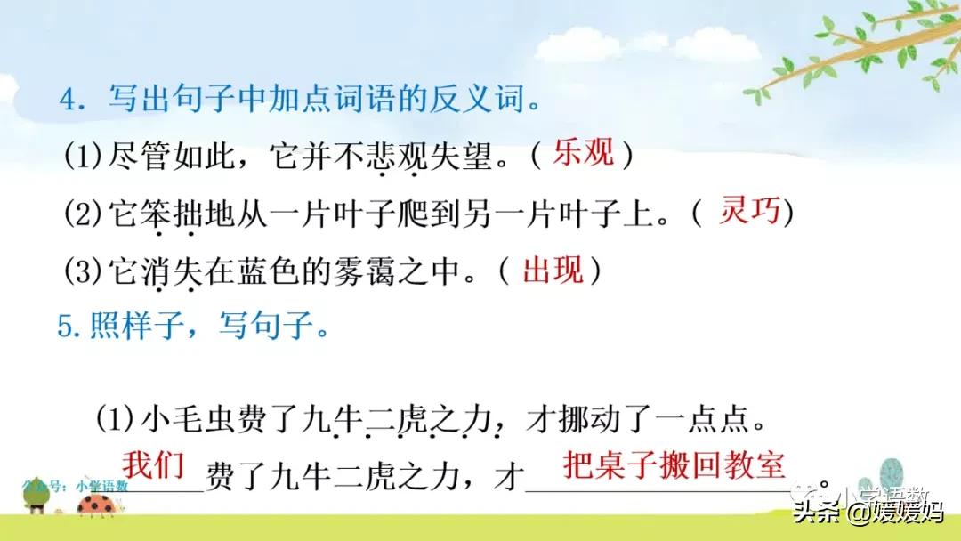 因为小毛虫不悲观、不失望,尽心竭力地工作,所以变成了灵巧轻盈的蝴蝶。