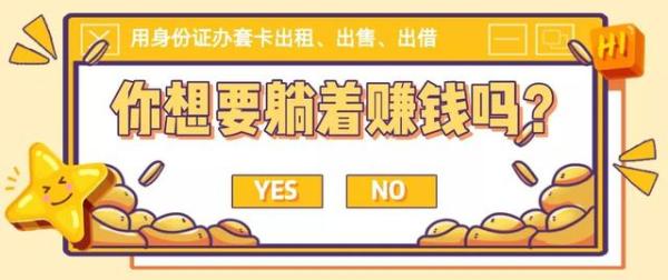用身份证办套卡(银行卡、手机卡、手机银行)出租、出售、出借,或者提供自己的微信、支付宝收款码,就能得到500元—5000元的高额报酬,这种“商机”你不心动吗?
